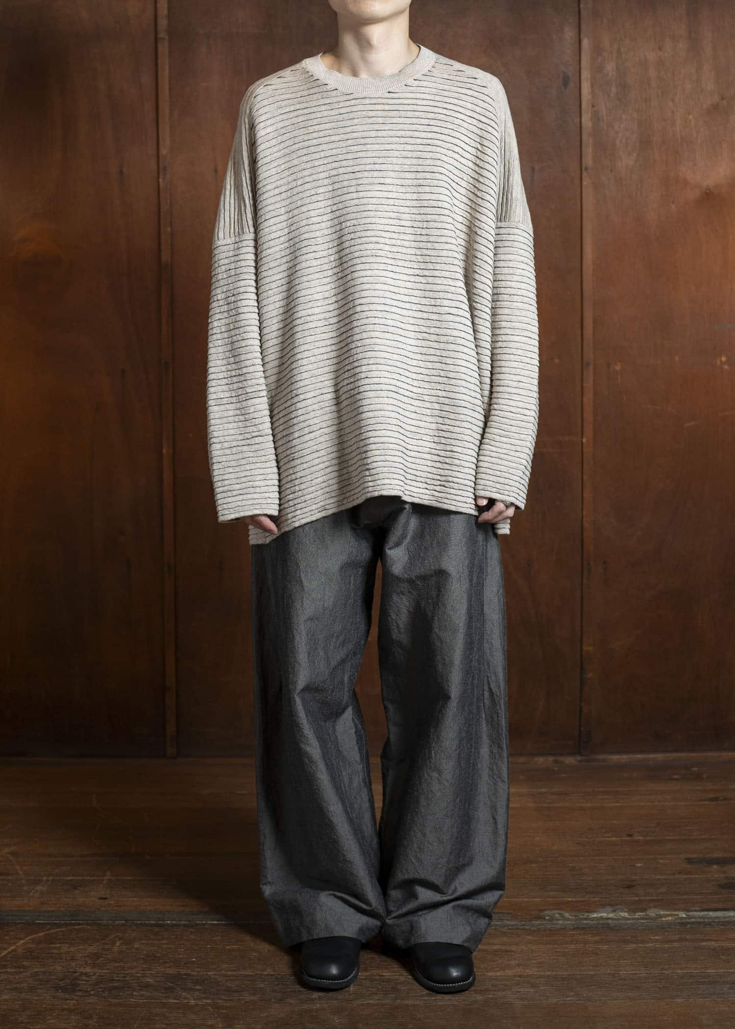 JAN-JAN VAN ESSCHE KNIT#70-LINEN COTTON YARN BEIGE Ripple Structure Cr – VISION OF FASHION