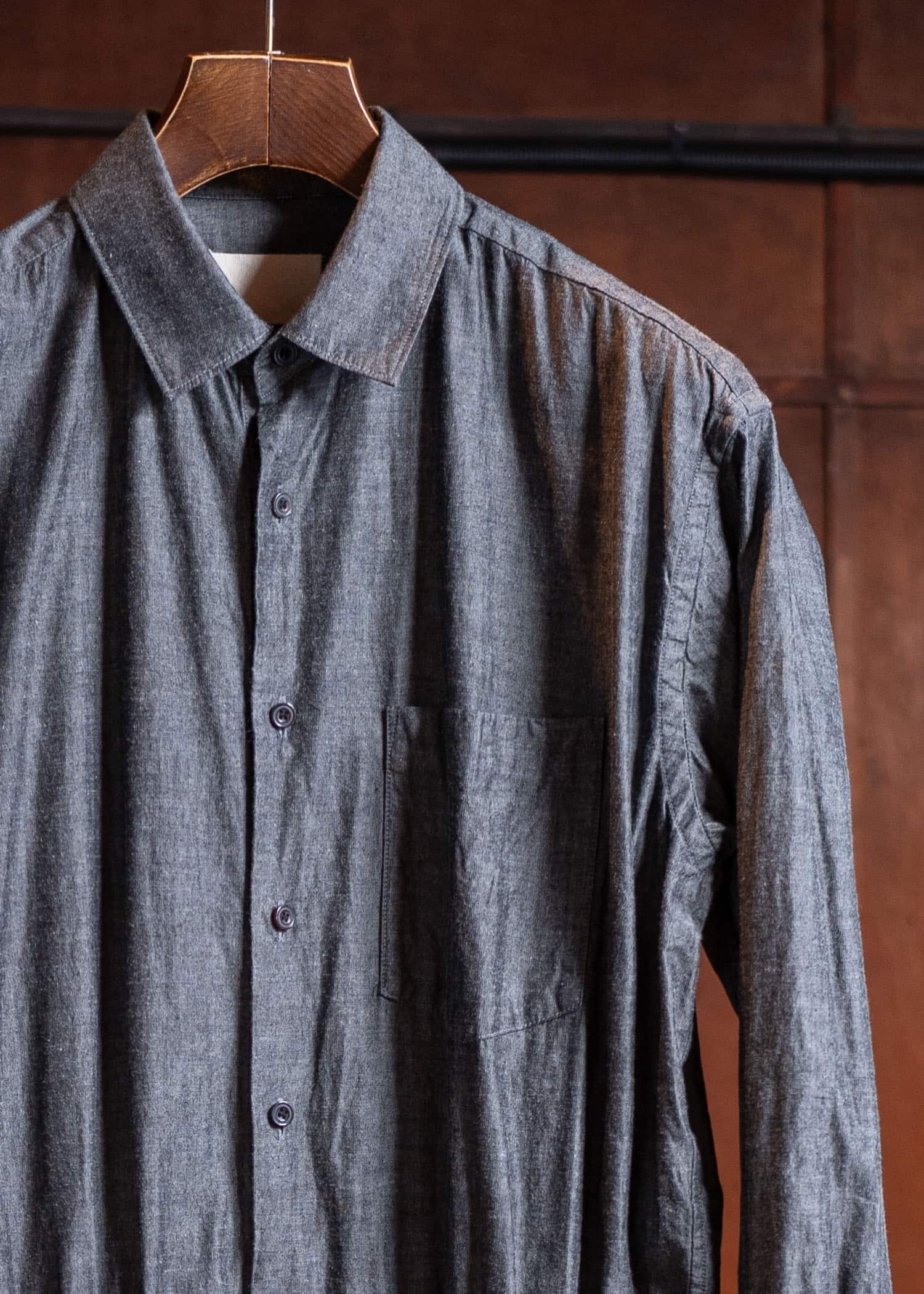 ヴィンテージの様な味わい深い雰囲気を楽しめると共に、スーピマコットンの品やかな光沢がある、上品なシャツオンスデニムです。